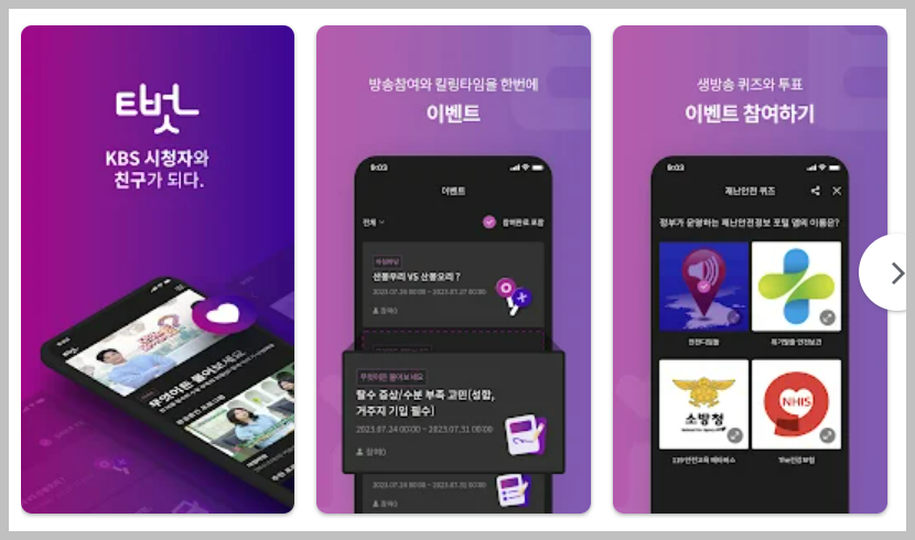 이 프로그램은 시청자가 참여할 수 있도록 ARS와 '티벗'이라는 어플을 활용해 인터랙티브한 환경을 제공합니다. 물론 ARS를 통해 핸드폰이나 집전화를 통해 참여할 수 있으나, 이번 포스팅에서는 아침마당 티벗 어플 설치 방법에 대해 알아보겠습니다.
