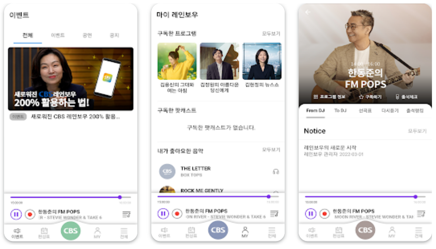 CBS는 기독교 관련 프로그램 외에도 다양한 시사, 교양, 음악 프로그램을 제공하여 청취자들에게 유익한 정보를 전달하고 있습니다. 주요 프로그램으로는 뉴스쇼, 시사매거진, 클래식 음악 시간 등이 있습니다